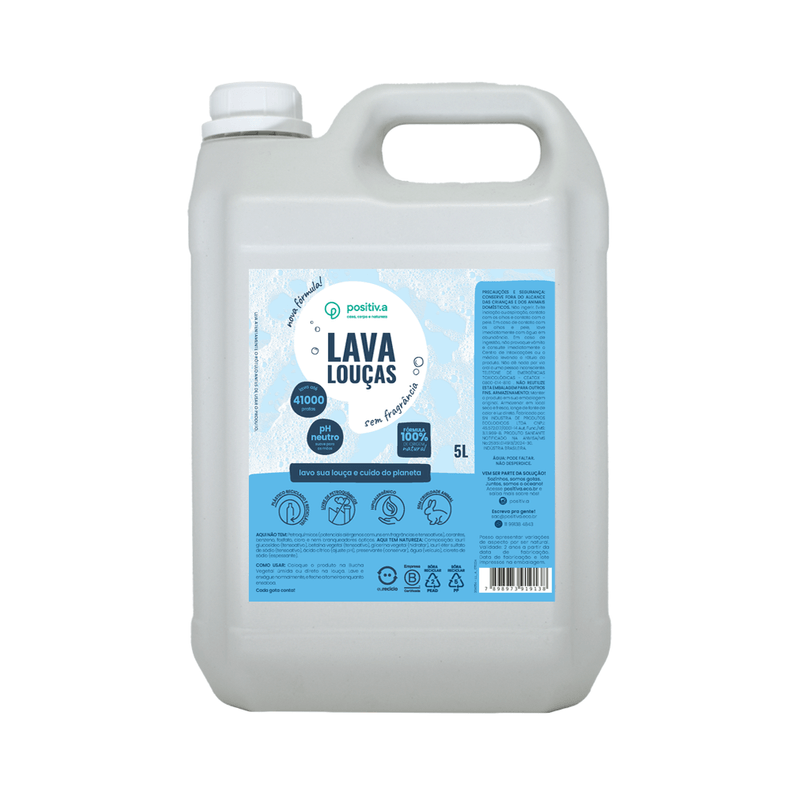 Experimente o Lava Louças Sem Fragrância, a escolha consciente para uma limpeza eficaz e desengordurante de alta performance. Livre de petroquímicos, e neutro para quem prefere sem fragrância. Gentil com suas mãos com pH neutro, glicerina vegetal e textura em gel, proporcionando hidratação e cuidado extra. O Refil de 5L lava até 41 mil pratos, utilizando 67% menos plástico que a versão de 420ml. Biodegradável, vegano e hipoalergênico, respeitando o meio ambiente, sua casa e sua saúde em cada lavagem.